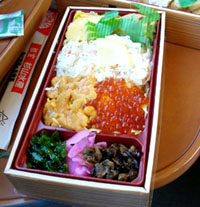 先日、小山ゆう率いる野球チーム・コピーズで箱根慰安旅行に行ってきた。 今回とにかく食事がどれも、ものすっごく美味しかった♪ 新ロマンスカーに乗りながら食べたお弁当が、これ! おいすぃ〜♪