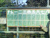 そして…ミラクルです!! あの最強「ホワイターズ」に勝っちゃいましたーっ!!! 小山が試合後、あまりの嬉しさに、スコアボードの前で満面の笑みを浮かべながら記念写真を撮っていました。(笑) 「ホワイターズ」の皆さん、喜びすぎてすみません。