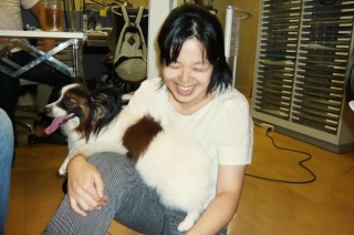 | 先日、仕事場にやまさき拓味先生と早川恵子先生ともんじ君が遊びに来て下さいました。
