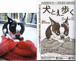 | もう4,5ヶ月前になりますが、やまさき拓味先生が週間漫画サンデーに連載していた(シーズンごと不定期連載)、 「犬と歩く」のセカンドシーズン2で、私の愛息子紋次朗を主人公に漫画を描いて頂きました。