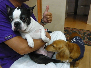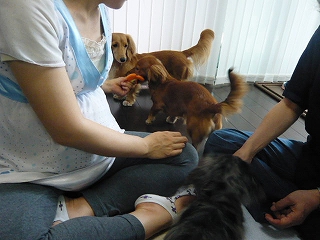 パパに甘えているレディ、ティアラ、ナナでした。この3姉妹ベリーキュート♥