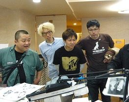 師匠の説明をみんな真剣に聞いています。向かって左から、ヤポンスキーこばやし画伯、ラブ守永さん、槙真太郎さん、本杉亀一さん、見切れているのが師匠です。